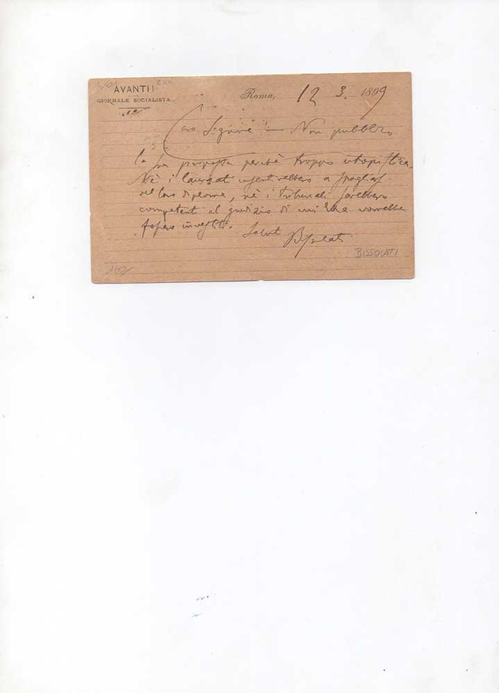 - 90x140 mm. Manoscritto a inchiostro nero su carta con intestazione Avanti! Giornale socialista.
