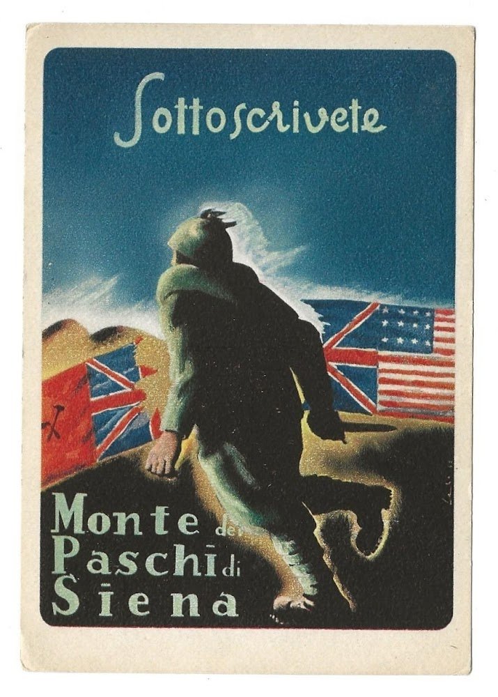 Cartolina originale d'epoca. Prestito Italiano. Sottoscrivete - Monte dei Paschi di Siena. Illustrata a colori. Zincografica - Firenze. Non Viaggiata e in Ottimo stato. , Molto buono (Very Good)