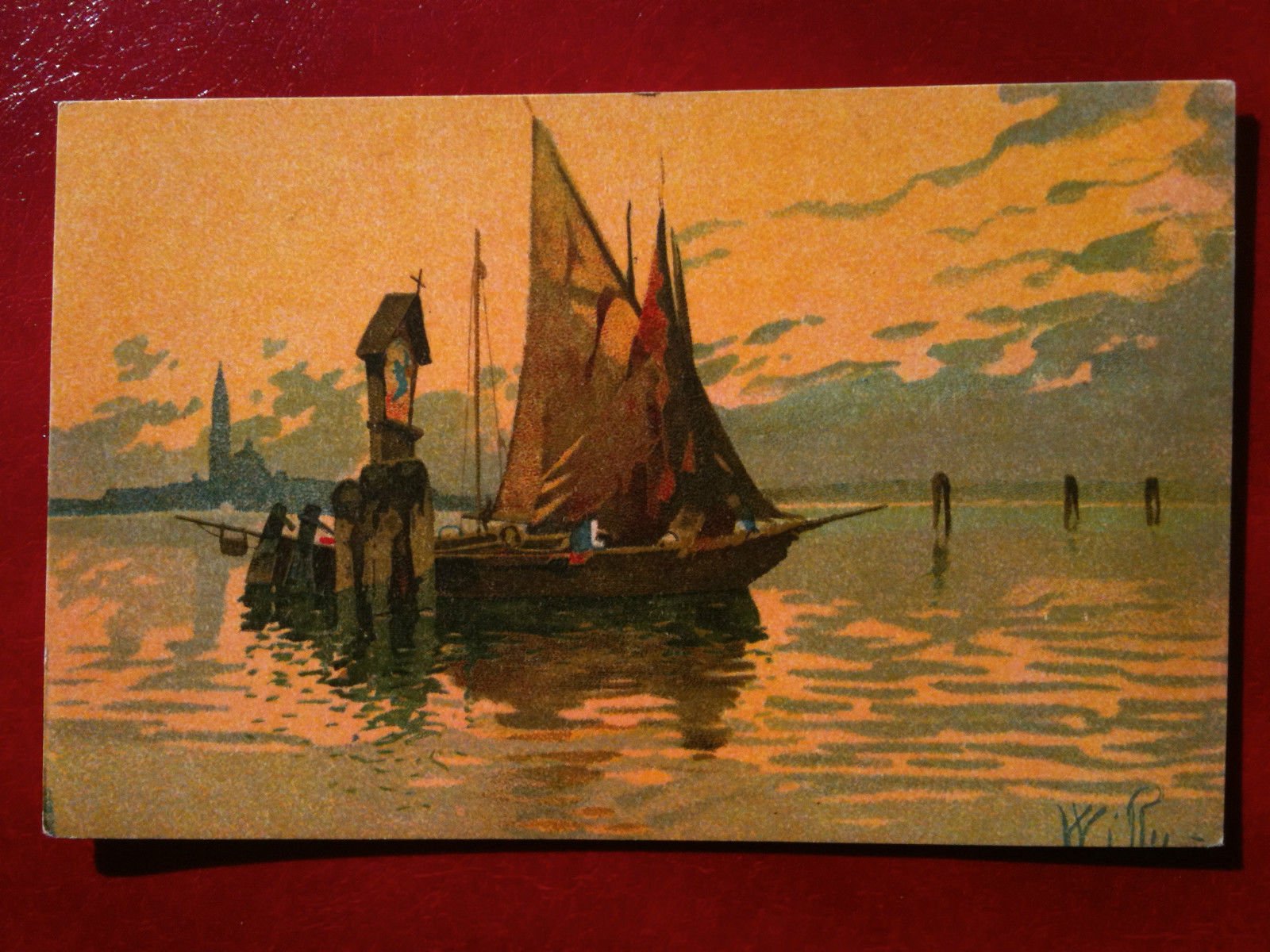 Cartolina primi '900VeneziaBarca a vela ormeggiatanon viaggiata - in buono stato e957