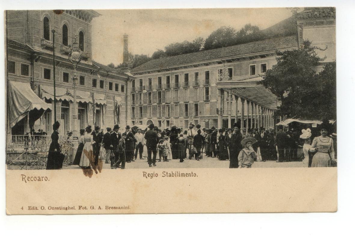 Cartolina originale, Recoaro Regio Stabilimento S. d. (primi anni del Novecento); cartolina originale ill. in b. n.; cm 14x9. Figurata; non viaggiata. Condizioni di conservazione Cartolina ben conservata (vedi foto). CART.1442G