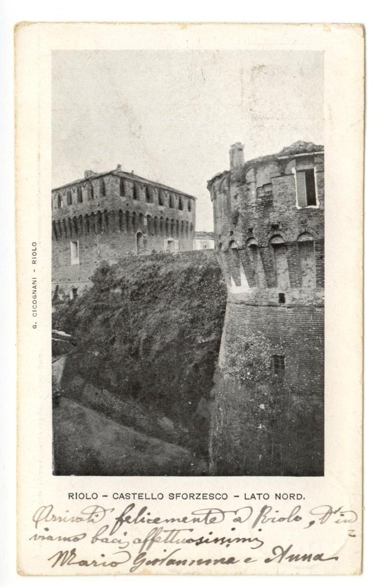Cartolina originale, Riolo Castello Sforzesco - Lato Nord. 1902; cartolina originale ill. in b. n. Cm 14x9. Viaggiata. Condizioni di conservazione Cartolina ben conservata (vedi foto). CART.1805G