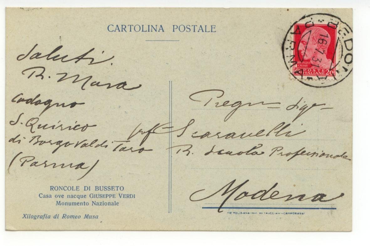 Cartolina Roncole di Busseto 1931 viaggiata Verdi