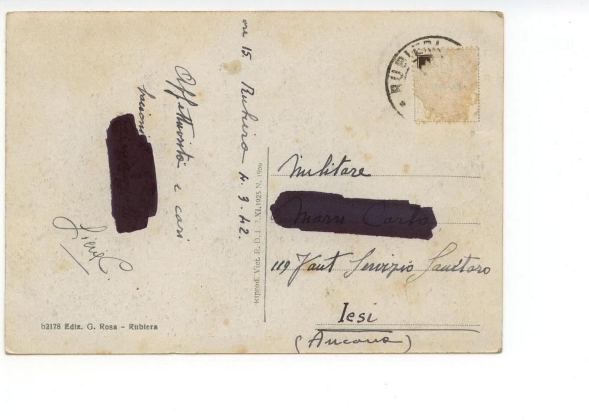 Cartolina originale, Rubiera La Rocca ed il Teatro Herberia 1942; cartolina originale ill. in b/n.; cm 14x9; viaggiata. Condizioni di conservazione Cartolina ben conservata. I nomi al retro sono coperti a pennarello (vedi foto). CART.1354G