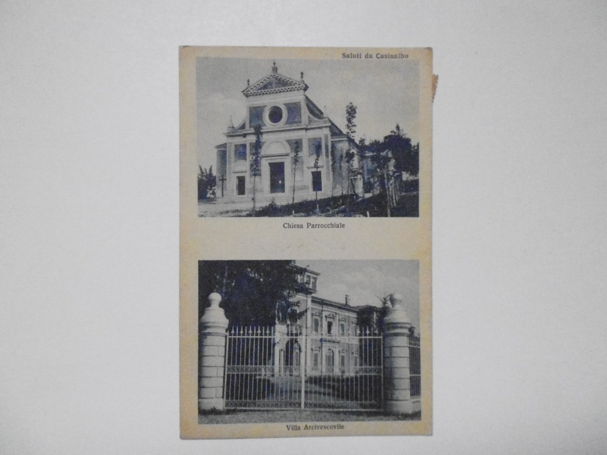 Cartolina originale, Saluti da Casinalbo Chiesa Parrocchiale Villa Arcivescovile Ediz. Giovanni Nicolini, 1931; cartolina originale ill. in b. n. Viaggiata. Cm 14x9. Condizioni di conservazione Cartolina molto ben conservata. Alcuni aloni di gora al retro (vedi foto). CART.3166G