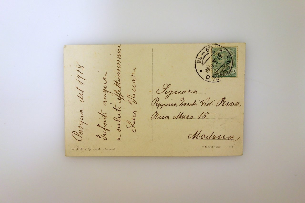 Fot. Edit. Volpi Oreste, Sassuolo, 1918; cartolina ill. in b/n. Viaggiata. Dimensioni: cm 8,5x13,5.