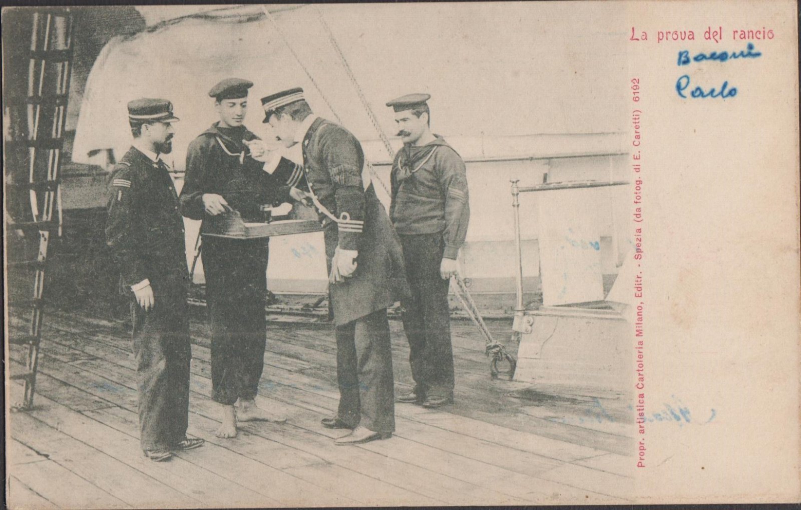 Cartolina Serie Vita di bordo: La prova del rancio nvg 1901