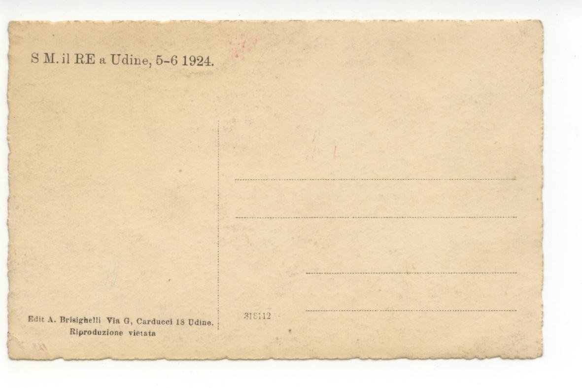 Fotocartolina originale, S M. Il Re a Udine, 5-6 1924. 1924; cartolina originale ill. in b. n. Cm 14x9. Figurata; non viaggiata. Condizioni di conservazione Cartolina ben conservata (vedi foto). CART.2132G