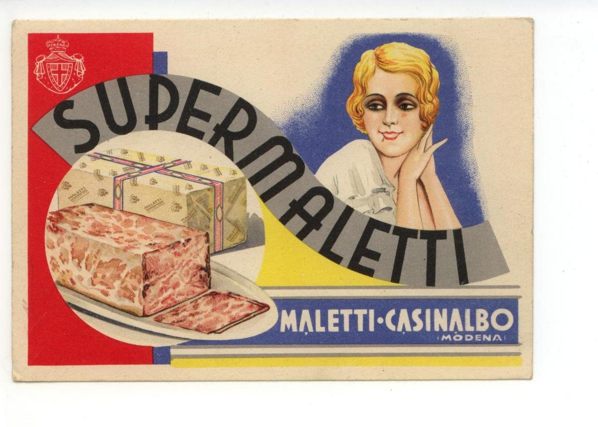 Cartolina originale, Supermaletti Maletti Casinalbo (Modena) S. d. (anni quaranta); cartolina originale ill. a col. Cm 15x11 (formato grande); Non viaggiata. Condizioni di conservazione Cartolina ben conservata (vedi foto). CART.2369G