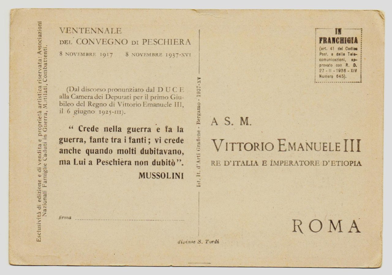Cartolina VENTENNALE CONVEGNO PESCHIERA Mussolini e Vittorio Emanuele III