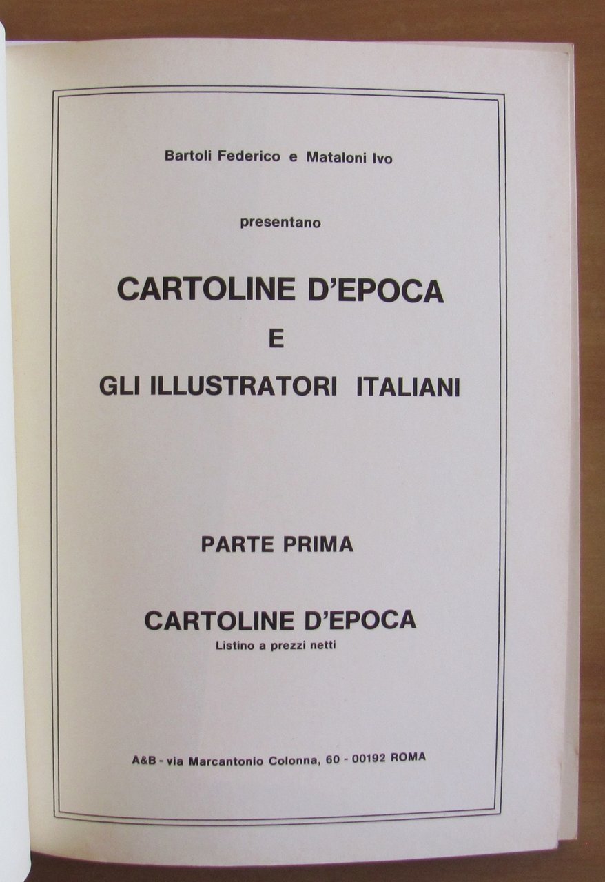 Parte Prima - Cartoline d'Epoca; Parte Seconda - Gli Illustratori Italiani. Con valutazioni e quotazione generale delle cartoline italiane divise per periodi e soggetti principali. Listino a prezzi netto. Molte illustrazioni fotografiche in b/n e a colori n.t. Ed. A&B - Roma, 1979. Brossura editoriale. 15,5x21,5; pp.123. Ottimo stato. , Ottimo (Fine)