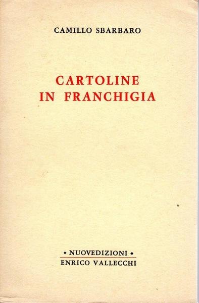 Cartoline in franchigia, prima edizione aprile 1966, pp. 113, formato 12 x 18,5.<BR>Copertina morbida di color giallo chiaro con titoli in nero e rosso al piatto anteriore e sul dorso.All'interno presente ritratto dell'autore di Primo Conti.In prima pagina bella dedica di Enrico Vallecchi a Italo Cremona, datata settembre 1966.<BR>Ottime condizioni.