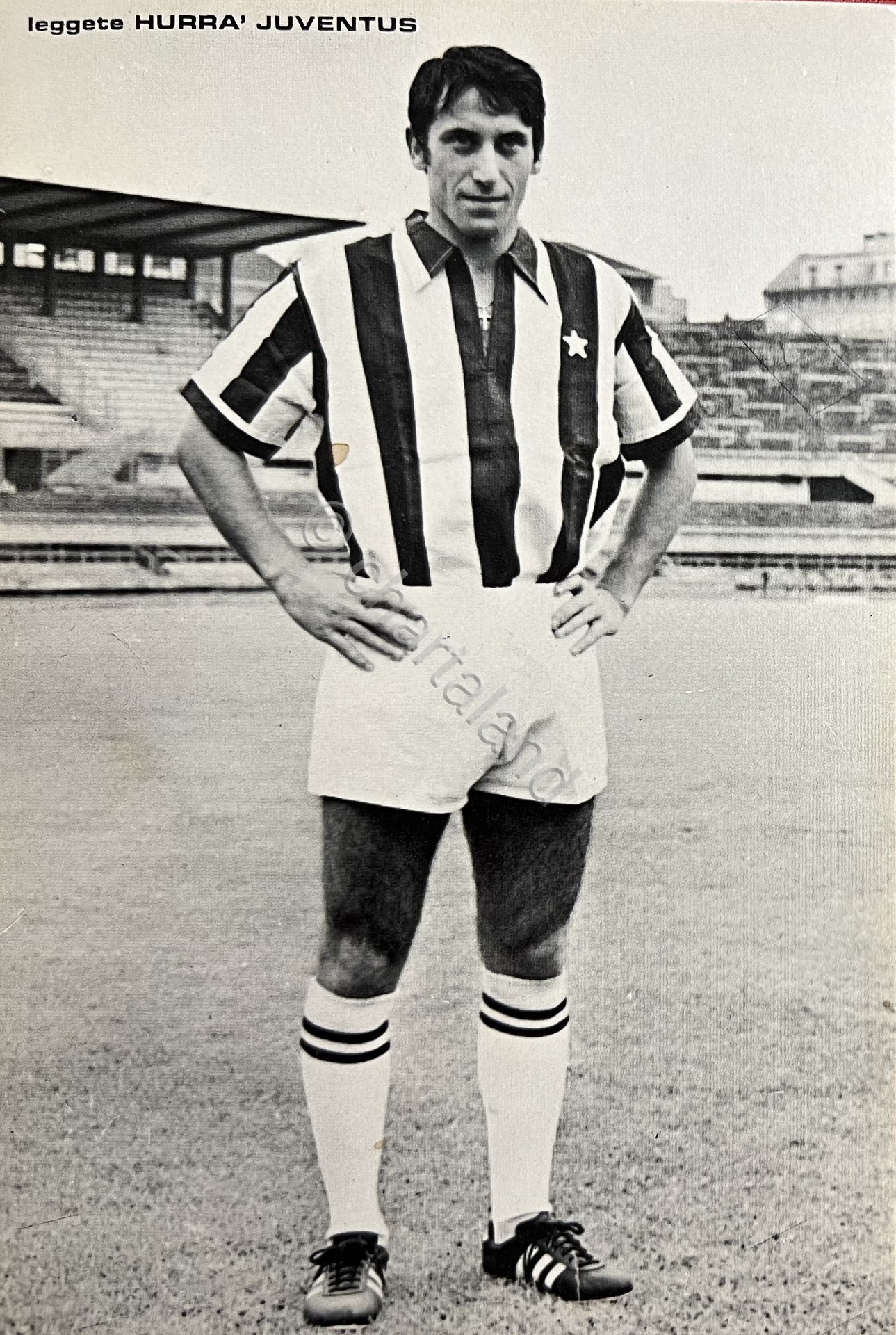 Cartoncino Fotografico Hurrà Juventus - Calciatore Giuseppe Furino - Anni '70