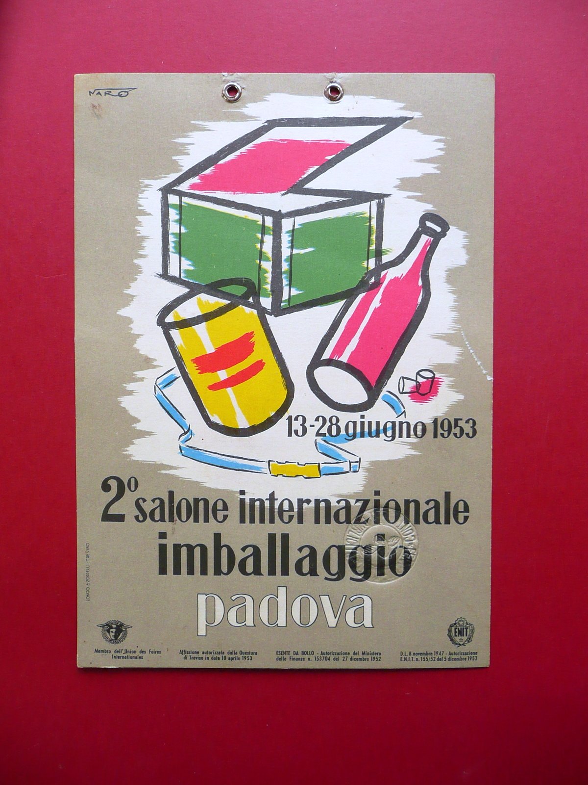 Cartoncino Locandina 2∞ Salone Internazionale Imballaggio Padova 1953 Naro