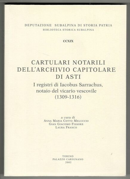 Cartulari notarili dell'archivio capitolare di Asti. I registri di Iacobus Sarrachus, notaio del vicario vescovile (1309-1316)