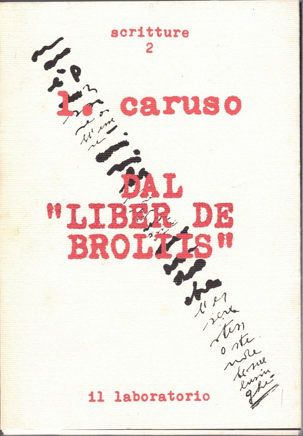 Luciano Caruso, Dal Liber de Broliis, Edizioni Il laboratorio, Parabita 1989, cartellina in cartoncino ed. cm 17x21 con titoli al dorso e al piatto contenente 16 cartoncini sciolti numerati ill. b.n. riportanti 16 poesie visive (una su ciascun cartoncino). Collana Scritture, vol. 2. Lievissimi segni del tempo alla cartellina, per il resto perfetto.