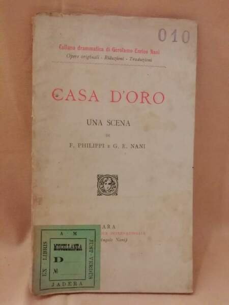 In 16', br. ed.pp. 40, ex libris al piatto ant., timbro numerico all'ang, sup., strappo al piede del dorso, fioriture e segni del tempo.Luogo di pubblicazione ZaraEditore Libreria Edireice InternazionaleCollana Collana drammatica Di G.E.NaniMateria/Argomento Teatro ***Due to bureaucratic reasons, books dated over 70 years old cannot be immediately exported, please contact us before placing the order.***
