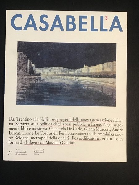 Rivista internazionale di architettura - anno LIX - dicembre 1995. Dal Trentino alla Sicilia: sei progetti della nuova generazione italiana. Servizio sulla politica degli spazi pubblici a Lione. Negli argomenti: libri e mostre su Giancarlo De Carlo, Glenn Murcutt, André Lurçat, Loos e Le Corbusier. Per l'osservatorio sulle amministrazioni: Bologna, metropoli della qualità. Res aedificatoria: editoriale in forma di dialogo con Massimo Cacciari. Numerose illustrazioni a colori e in bianco e nero