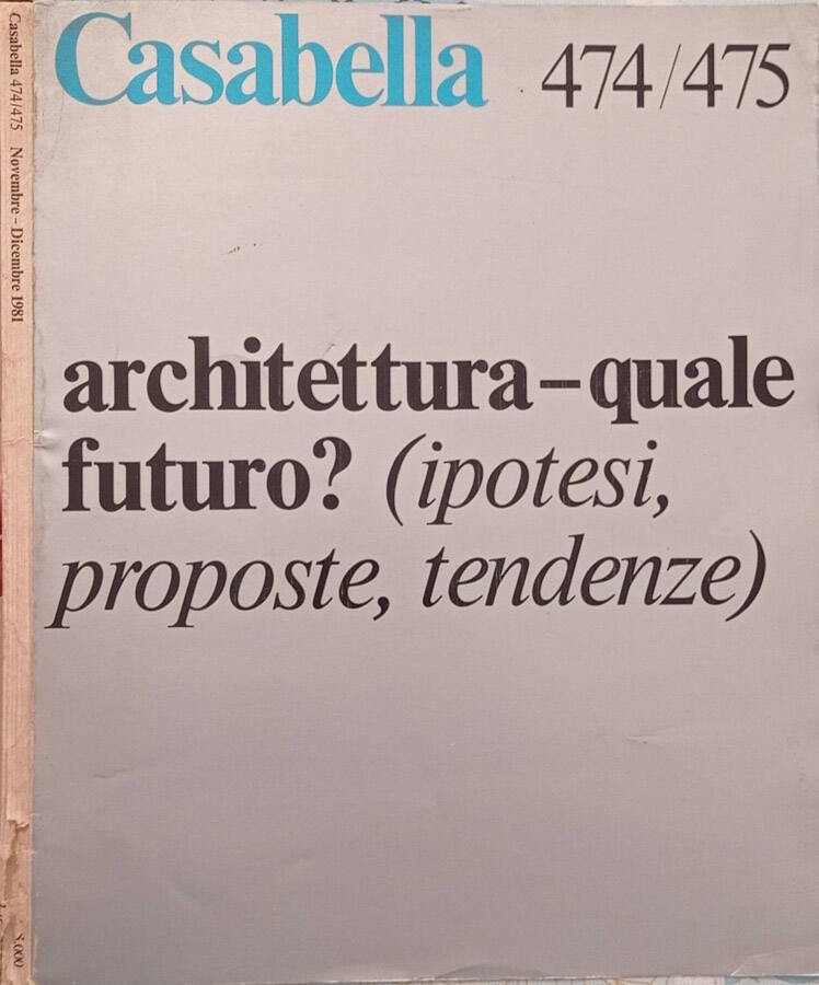 Rivista bimestrale di architettura, in brossura flessibile in cartoncino , opera n.474,475, la rivista riporta i segni delluso e del tempo, tagli al dorso e segni delluso, leggermente scurito ai piatti, rivista fragile, testo ben godibile, impaginazione a colonne e fogli ricchi di illustrazioni in nero nel testo. Numero pagine 112.