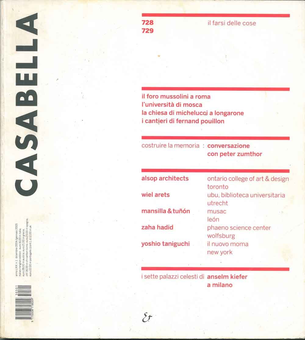 Casabella Rivista internazionale di architettura; International Architectural Review, dicembre 2004, n° 694, anno LXIX, Direttore Francesco Dal Co