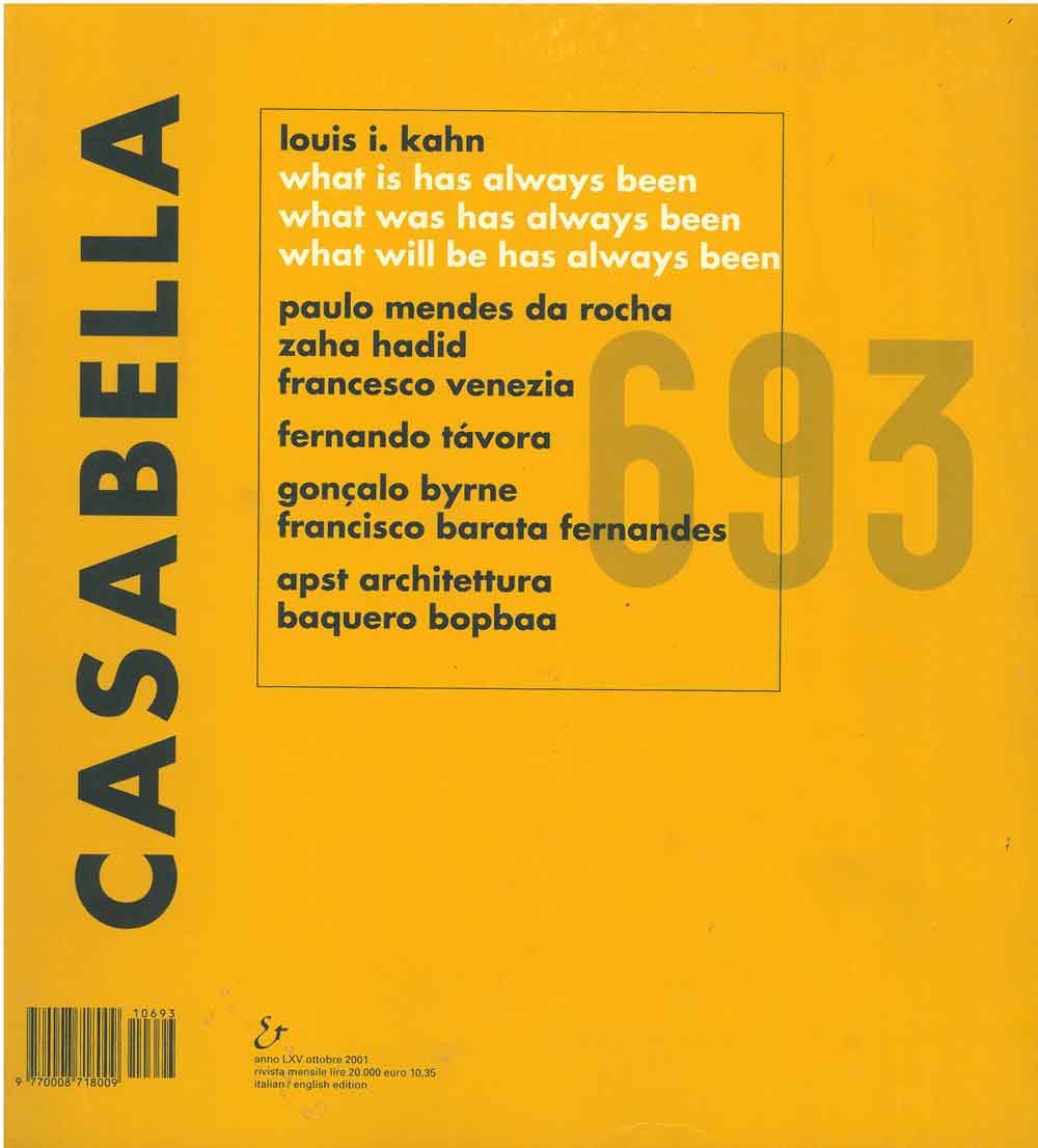 Casabella Rivista internazionale di architettura; International Architectural Review, Ottobre 2001, n° 693, Direttore Francesco Dal Co