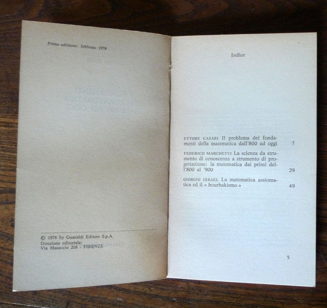 Ettore Casari, Giorgio Israel,Federico Marchetti,I FONDAMENTI DELLA MATEMATICADALL'800 AD OGGI.Guaraldi, Firenze 1978,prima edizione: febbraio 1978,brossura, 18,5x11 cm., pp.67,PER UNA DIDATTICA DI RIFORMA - 4,peso: g.150