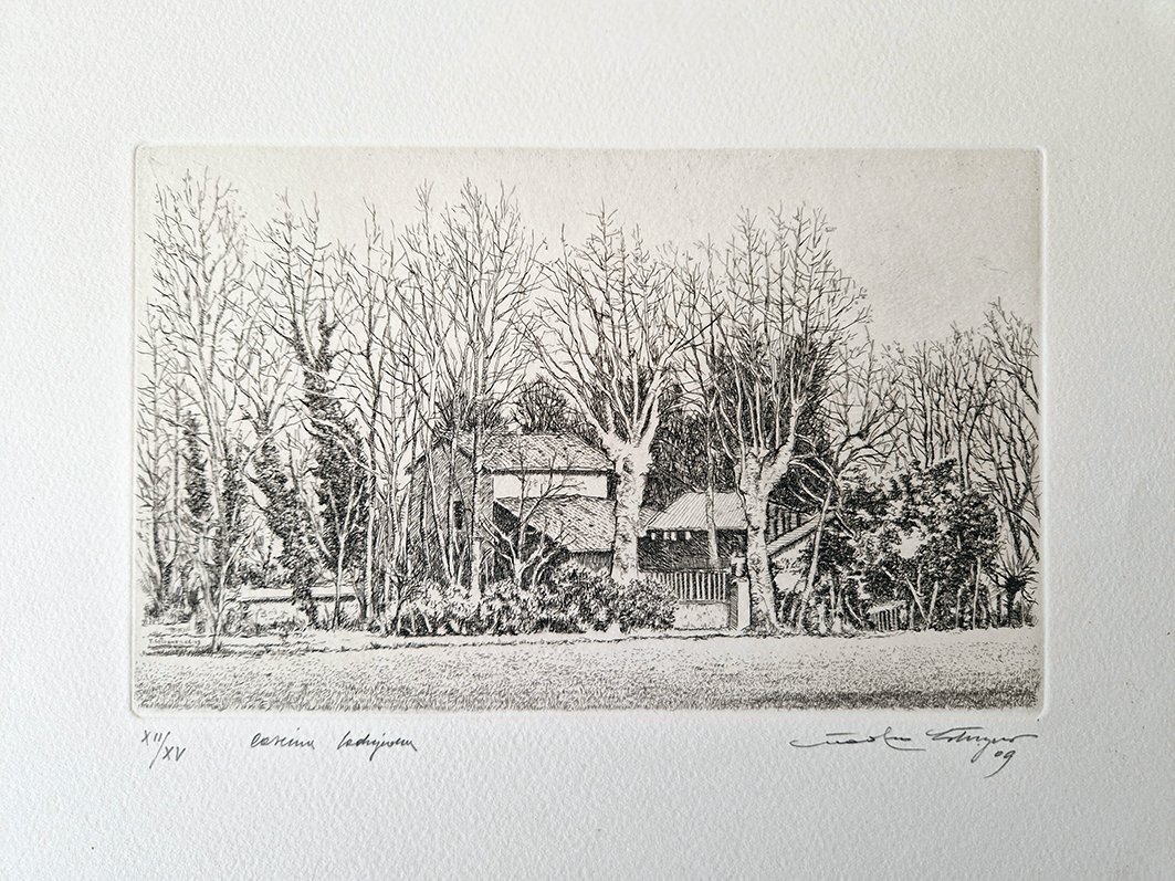 Cascina Lodigiana. Acquaforte originale di Teodoro Cotugno.