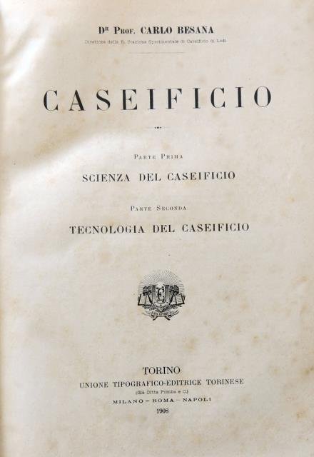 Caseificio. Parte Prima: Scienza del Caseificio. Parte seconda. Tecnologia del Caseificio.