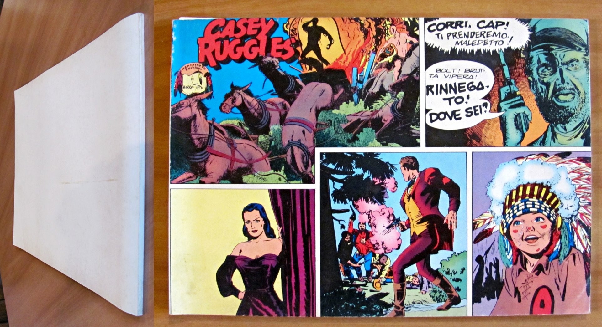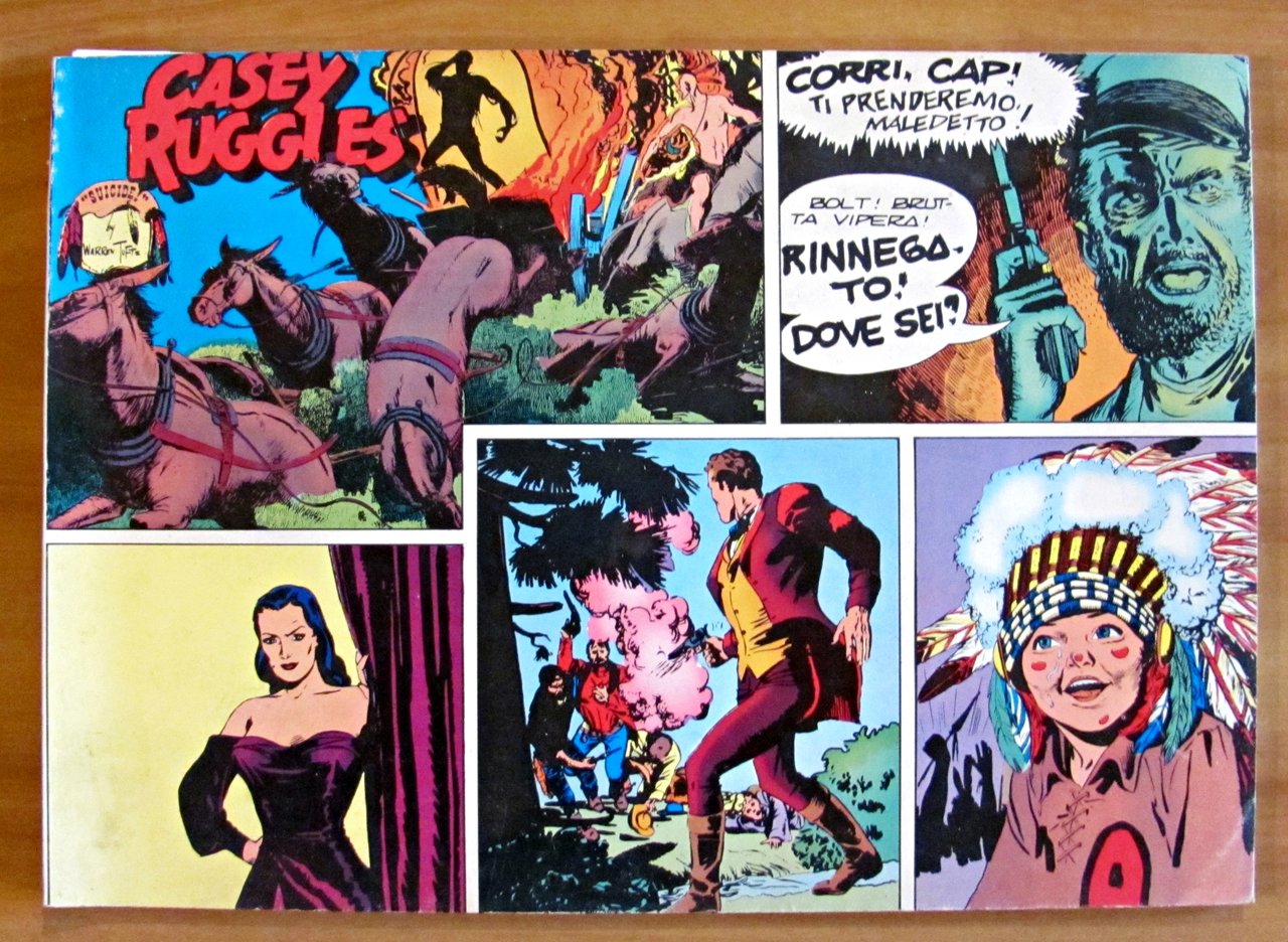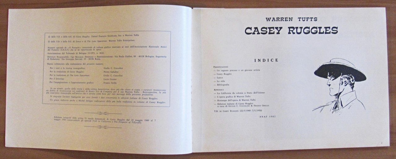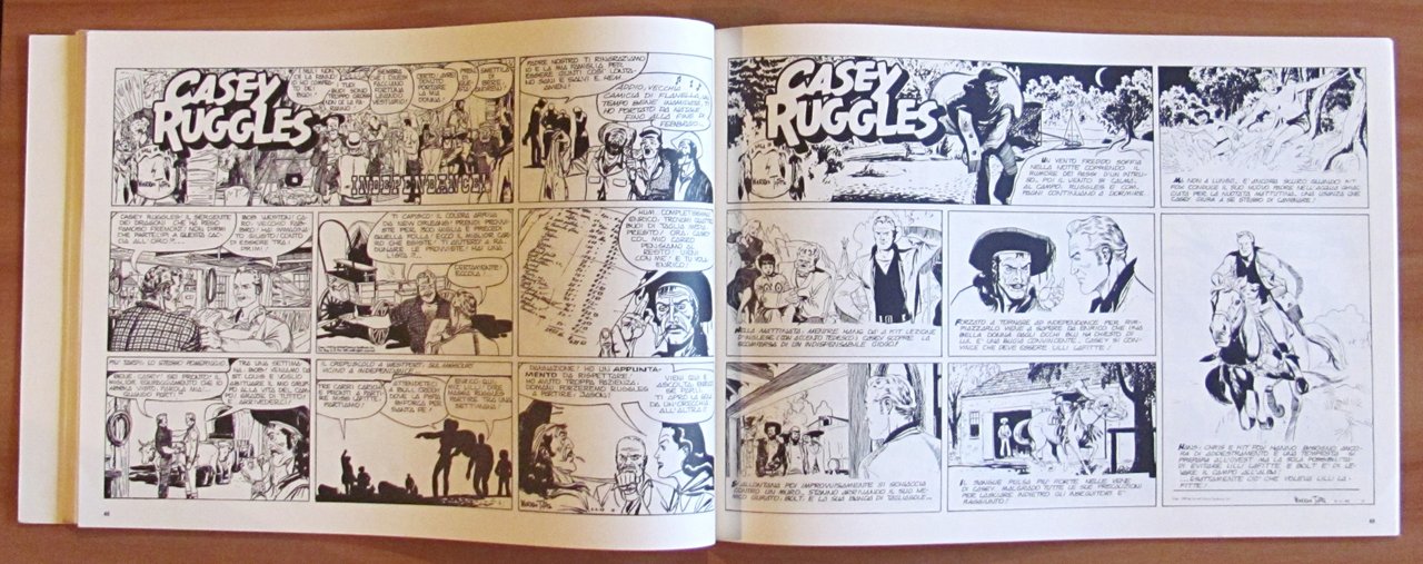 Edizione integrale delle prime 51 tavole domenicali di Casey Ruggles dal 22 maggio 1949 al 7 maggio 1950 comprendenti gli episodi "Trek to California" e "The Emperor of Tillyvally". Illustrazioni a fumetti in b/n n.t. a tutte le pagine. Numero Speciale de "Il Fumetto" trimestrale di cultura grafica riservato ai soci dell'Associazione Nazionale Amici del Fumetto (A.N.A.F.) che se ne ripartiscono le spese. Ed. ANAF - Bologna, 1982. Brossura editoriale. 34,5x24,5; pp. 83. Ottimo stato. , Ottimo (Fine)