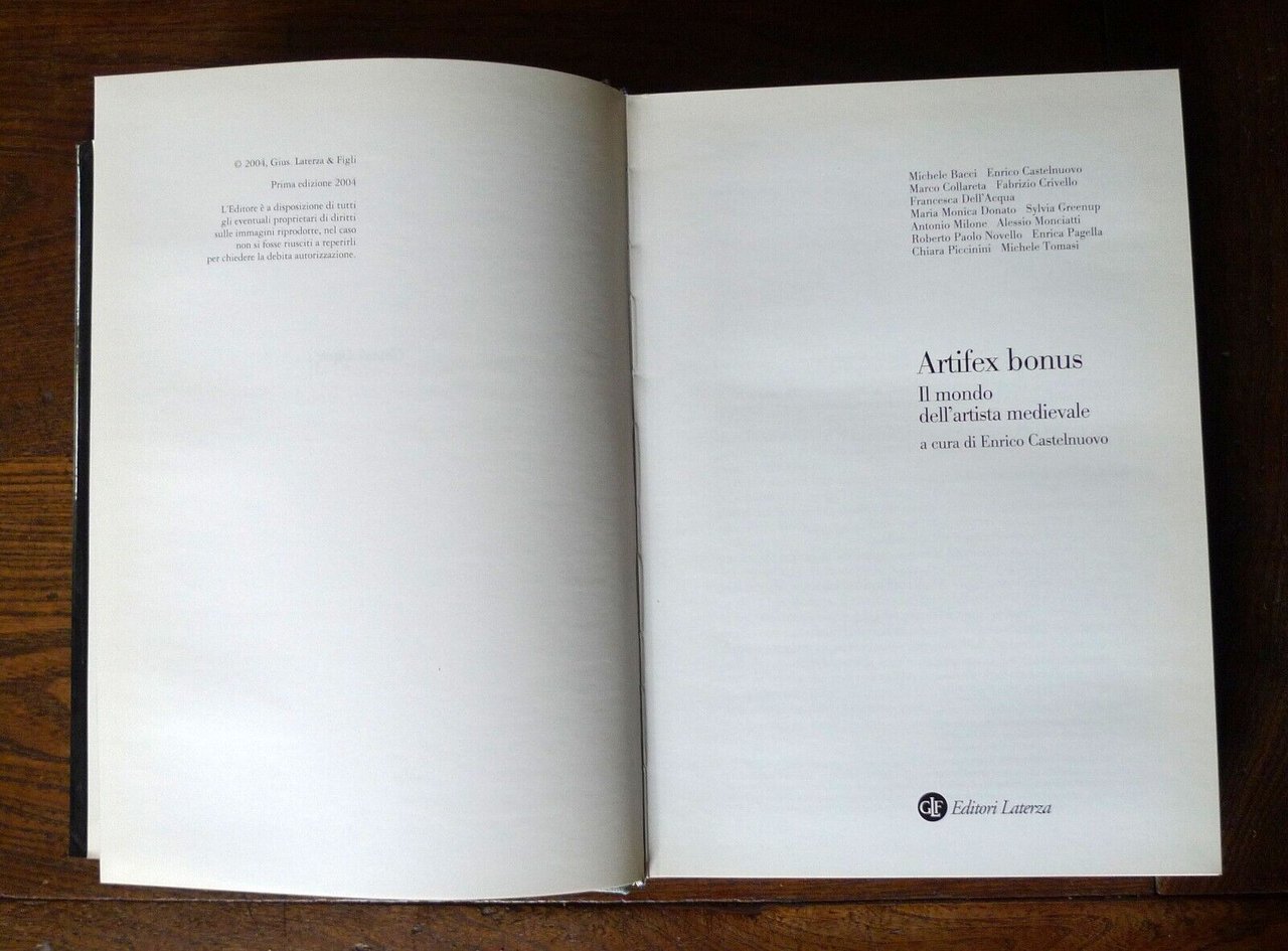 A cura di Enrico Castelnuovo,ARTIFEX BONUS.IL MONDO DELL'ARTISTA MEDIEVALE.Editori Laterza, Bari 2004,prima edizione,copertina rigida, rilegatura in tela,sovraccoperta illustrata, 24,5x17,5 cm., pp.XXXV-248,illustrazioni in nero e a colori nel testoe su tavole fuori testo,collana GRANDI OPERE,ISBN: 88-420-7421-7,peso: kg.1,1