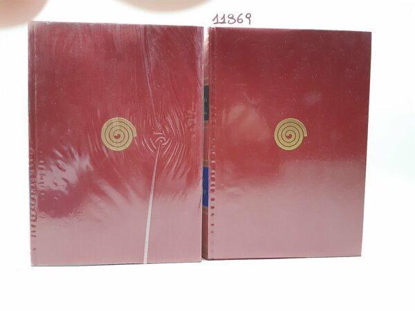 sovraccoperta in acetato con alcune pieghe al secondo volume, legatura rigida in tela rossa con titoli in oro al dorso, taglie superiori leggermente impolverati con qualche lieve sporcizia, interno in buono stato, numero pagine 562 + 829 dimensioni di ciascun volume cm 25 * 18,5