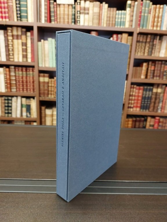 In-4° (cm. 29), pagine 109 [19] composte col carattere Garamond, titolo in rosso e nero. Esemplare n.146 della tiratura di 250 su carta Magnani di Pescia. Brossura editoriale a risvolti, titolo in nero al piatto, camicia e custodia cartonate in azzurro scuro. Allegato foglio sciolto di nota esplicativa (come da bibliografia, Mavilla p. 218). Esemplare allo stato di nuovo.