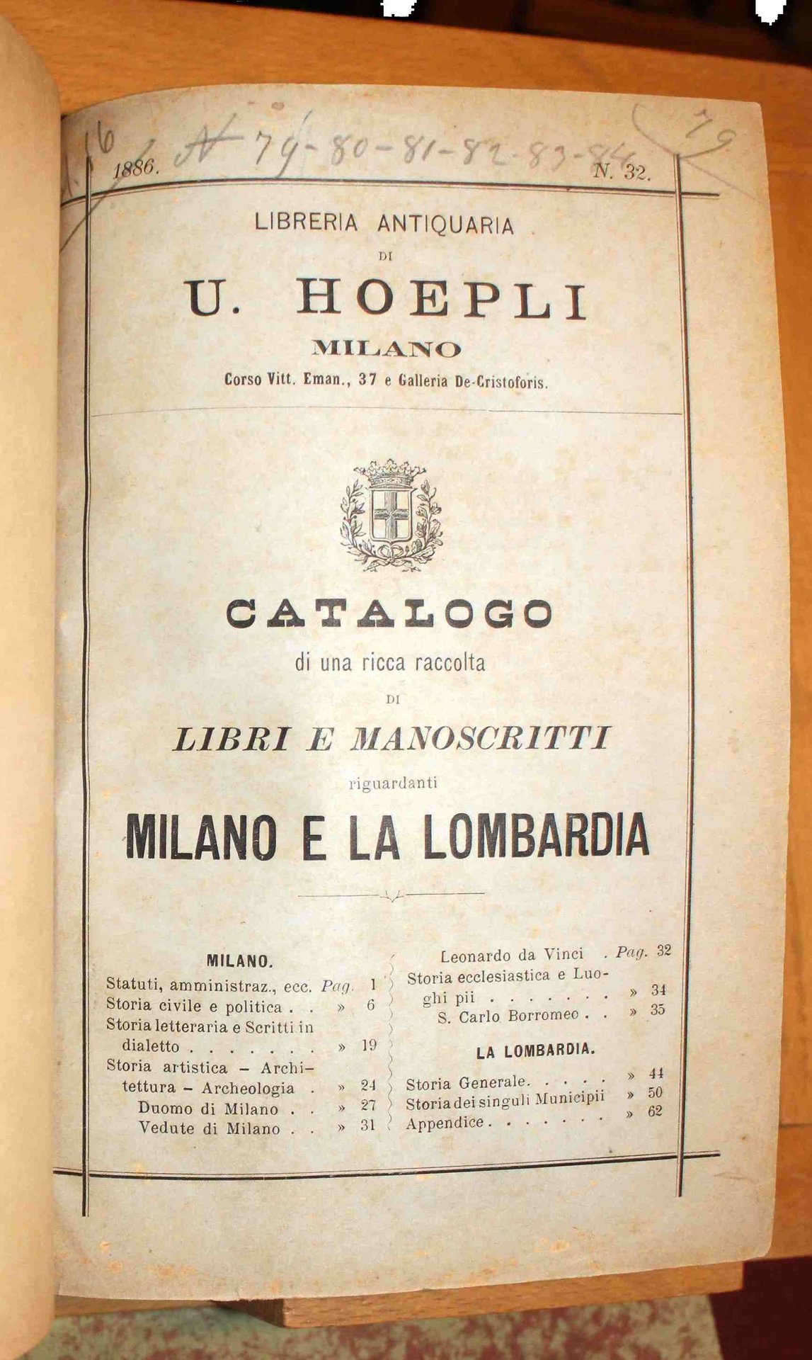 Cataloghi di libri riguardanti: Milano e Lombardia - Roma - Pompei - Vesuvio - Ercolano - Venezia e Veneto