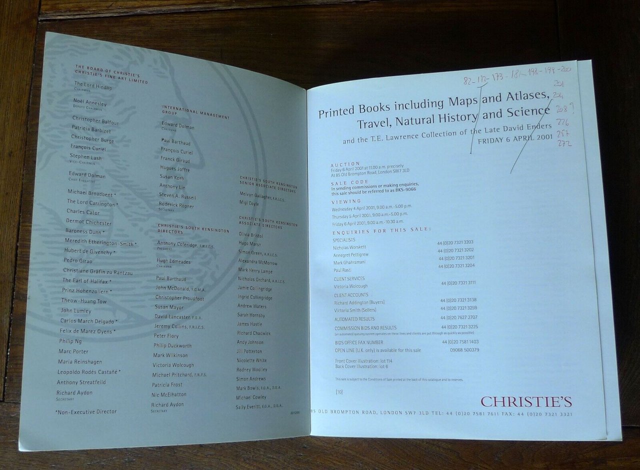 CATALOGO ASTA 2001 CHRISTIE'S.PRINTED BOOKS,INCLUDING MAPS AND ATLASES,TRAVEL