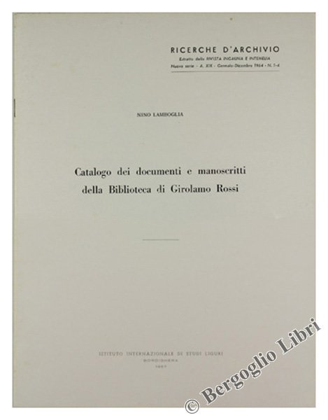 CATALOGO DEI DOCUMENTI E MANOSCRITTI DELLA BIBLIOTECA DI GIROLAMO ROSSI.