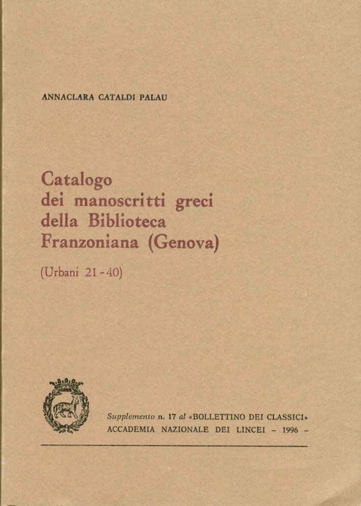 Catalogo dei Manoscritti Greci delle Biblioteca Franzoniana. Genova (Urbani 21-40)