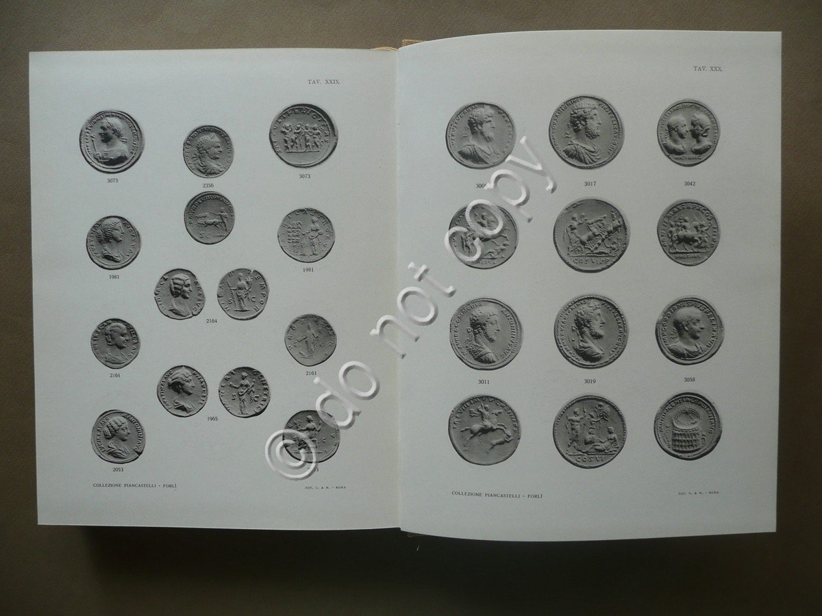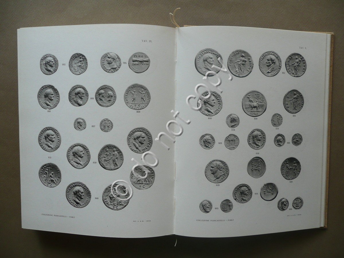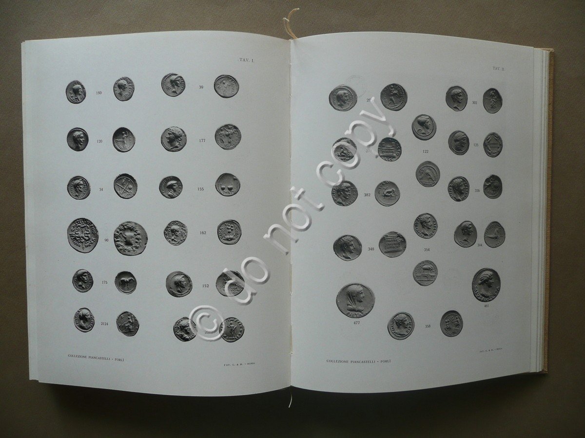 Secondina L. Cesano, Catalogo della collezione numismatica di Carlo Piancastelli Soc. Tipografica Forlivese, Forlì 1957, cm 27,5x21,5, pp. 451 più XXX (30) tavv. con moltissime ill. fot. in b/n fuori testo di monete della collezione; tutta tela ed. con titolo in oro entro tassello al dorso. Condizioni di conservazione Volume complessivamente molto ben conservato con leggere tracce d'uso, coperte con lievissimi trascurabili accenni d'ingiallimento, capitelli con piccole sfilacciature, due tagli con poche piccole bruniture. Interni pressoché ottimi, freschi. Presenza di XXX (30) tavole contenenti moltissime illustrazioni fotografiche in bianco e nero fuori testo di monete della collezione. SETT76.L6705 N