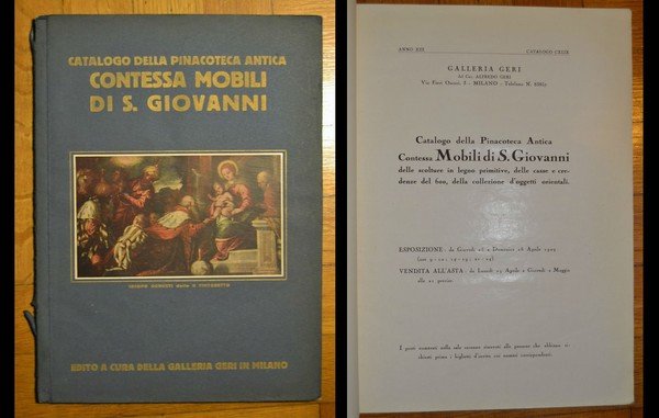 *Catalogo della Pinacoteca Antica Contessa Mobili di S. Giovanni delle scolture in legno primitive, delle casse e credenze del 600, della collezione d'oggetti orientali.