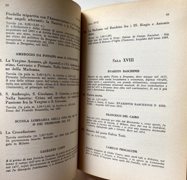 Soggetti: Cataloghi, Pinacoteche, Musei, Esposizioni, Mostre, Collezioni, Riferimento, Consultazione, Bibliografia, Indici, Opere, Pittura, Pittori, Raccolte, Collezionismo, Arte, Artisti, Gallerie, Libri Vintage Fuori catalogo, Libri illustrati, Anni Cinquanta, Elenchi, Opere generali, Affreschi, Autori, Permanenti, Quadri, Dipinti, Capolavori, Pianta, Percorso espositivo, Storia, Stili pittorici, Scuole, Pittori italiani, Gotico, Pittura veneta, Pittura lombarda, Rinascimento, Piero della Francesca, Bramante, Raffaello, Caravaggio, Seicento lombardo, Scuole straniere, Il Settecento, Il Novecento, Jesi, Vitali, Donazioni, Lascito, Painting, Italy, Milan, Catalogs, Catalogues, Peinture européenne, Katalog, Mailand, Galerie der Brera, Sammlung, Schilderkunst, Catalegs, Malarstwo, Wlochy, Katalogi, Accademia di Belle Arti, Maria Teresa d'Austria, Carlo Giuseppe di Firmian, Giuseppe Piermarini, Luigi Vanvitelli, Fernanda Wittgens, Predicazione a Gerusalemme, Vittore Carpaccio, Cena in Emmaus, Guido Cagnacci, Morte di Cleopatra, Giovanni Bellini, Pietà, Rembrandt Harmenszoon Van Rijn, Pieter Paul Rubens, Antoon Van Dyck, Antonio Canova, Andrea Mantegna, Cristo morto, Maestro di Mocchirolo, Pecino da Nova, Adorazione dei Magi, Stefano da Verona, Barnaba da Modena, Tiziano, Tintoretto, Veronese, Luca Signorelli, Perugino, Lazzaro Bastiani, Cima da Conegliano, Francesco Morone, Vecellio, Romanino, Moretto da Brescia, Lorenzo Lotto, Giovanni Battista Moroni, Bramantino, Vincenzo Foppa, Campi, Correggio, Dosso Dossi, Carlo Crivelli, Nicolò Pisano, Gentile da Fabriano, Ortolano (Giovan Battista Benvenuti), Sposalizio della Vergine, Cristo alla colonna, Pala Montefeltro, Guido Reni, Ludovico Carracci, Canestra di frutta, Orazio Gentileschi, Mattia Preti, Spagnoletto, Salvator Rosa, Battistello, Giulio Cesare Procaccini, Bernardo Cavallino, Francesco Cairo, Annibale Carracci, Luca Giordano, Giambattista Tiepolo, Francesco Solimena, Pierre Subleyras, Luini, Martirio di San Sebastiano, El Greco, Bramante, Canaletto, Giovan Battista Tiepolo, Giuseppe Maria Crespi, Francesco Hayez, Giuseppe Bossi, Andrea Appiani, Giovanni Fattori, Gerolamo Induno, Giuseppe Molteni, La congiura dei Lampugnani, Iconografia, Vergine, Ritratti, Disegni, Tele, Santi, Venezia, Madonna, Bambino, Scuola Fiamminga, Gaudenzio Ferrari, Bologna, Jan Bruegel, Ritratto, Rubens, Amsterdam, Anversa, Maestro, Malaguzzi Valeri, Paesaggio, Olio su tavola, Olio su tela, Scuola Veneziana, Direttori, Visitatori, Turismo, Viaggio, Art Galeries, Museums, Exhibitions, Collections, Reference, Consultation, Bibliography, Indexes, Works, Painters, Collections, Collectibles, Artists, Galleries, Out of print books, Illustrated books, Fifties, Lists, General works, Frescoes, Authors, Permanent, Paintings, Paintings, Masterpieces, Plan, Exhibition itinerary, History, Painting styles, Schools, Italian painters, Gothic, Venetian painting, Lombard painting, Renaissance, Raphael, Lombard seventeenth century, Foreign schools, The eighteenth century, The Twentieth Century, Donations, Bequest, Academy of Fine Arts, Preaching in Jerusalem, Supper at Emmaus, Death of Cleopatra, Dead Christ, Masters, Adoration, Marriage of the Virgin, Christ at the column Basket of fruit, Iconography, Virgin, Portraits, Drawings, Canvases, Saints, Venice, Child, Flemish School, Bologna, Portrait, Antwerp, Landscape, Oil on panel, Oil on canvas, Venetian School, Directors, Visitors, Tourism, Travel