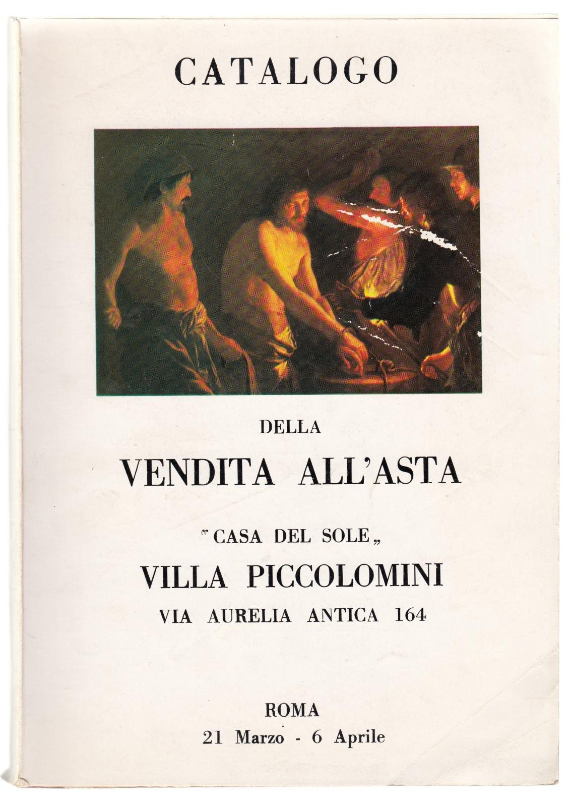 CATALOGO DELLA VENDITA ALL'ASTA CASA DEL SOLE VILLA PICCOLOMINI COPERTINA FLESSIBILE EDITORIALE CON UNA MANCANZA NELL' A COLORI DELLA COPERTINA PIEGHE, LE ULTIME PAGINE PRESENTANO UNO STRAPPO NELLA PARTE CENTRALE AL MARGINE DI POCHI MM. CM. 17 X 24