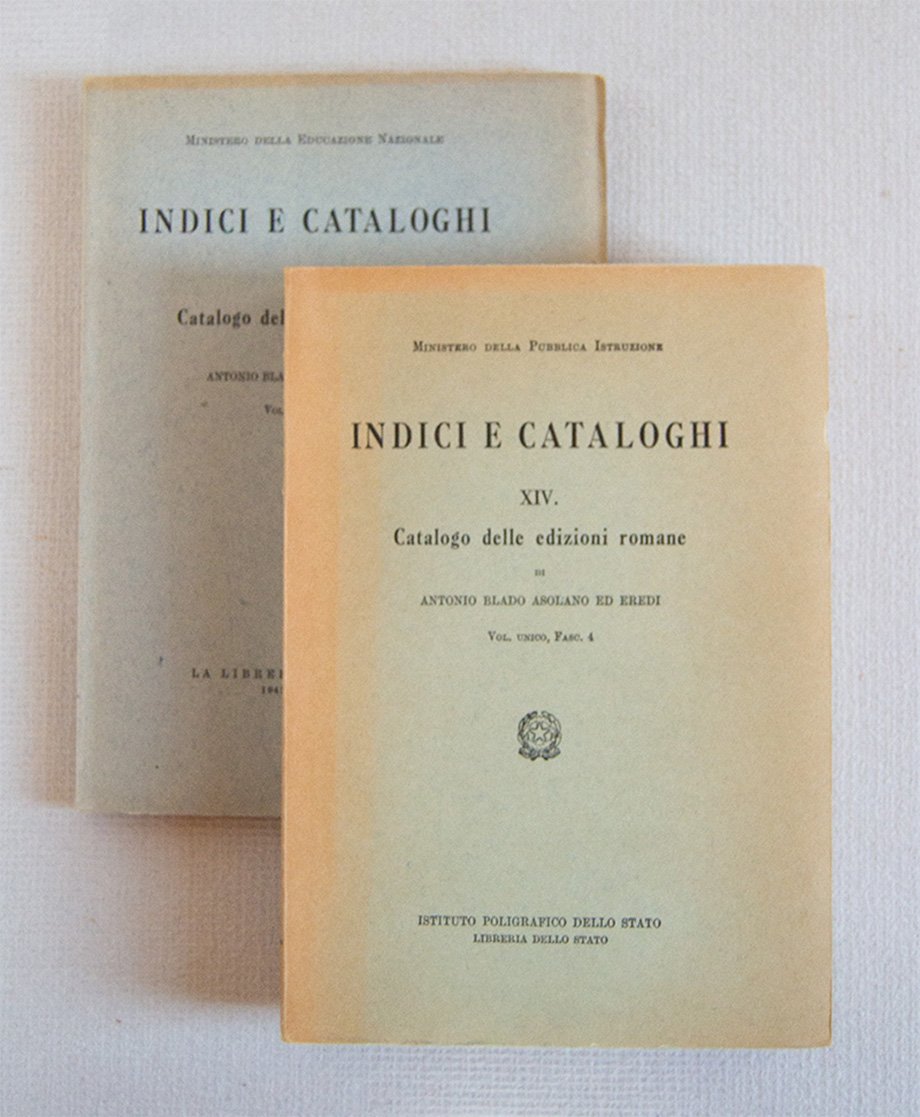 Catalogo delle edizioni romane di Antonio Blado Asolano ed Eredi (1516-1593) Possedute dalla Biblioteca Nazionale Centrale Vittorio Emanuele II di Roma. Fasc. III Catalogo delle edizioni romane di Antonio Blado Asolano ed Eredi (1516-1593) Possedute dalle Biblioteche Alessandria, Angelica, Casanatense, Corsiniana e Vallicelliana di Roma, Dalla Biblioteca Vaticana, Dall'Archivio di Stato di Roma e dall'Archivio Segreto Vaticano. Fasc. IV.