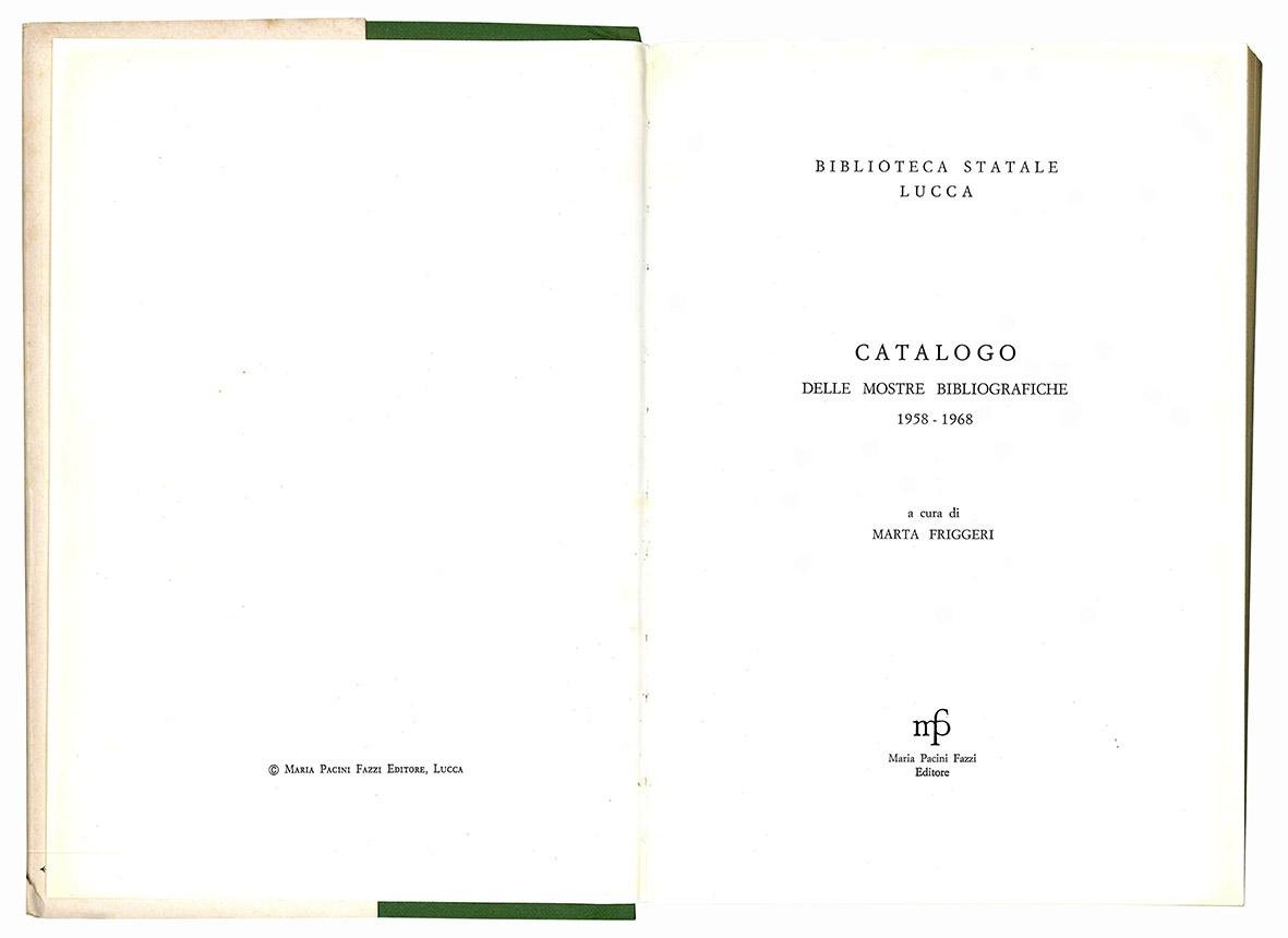 Catalogo delle mostre bibliografiche 1958 - 1968. A cura di Marta Friggeri.