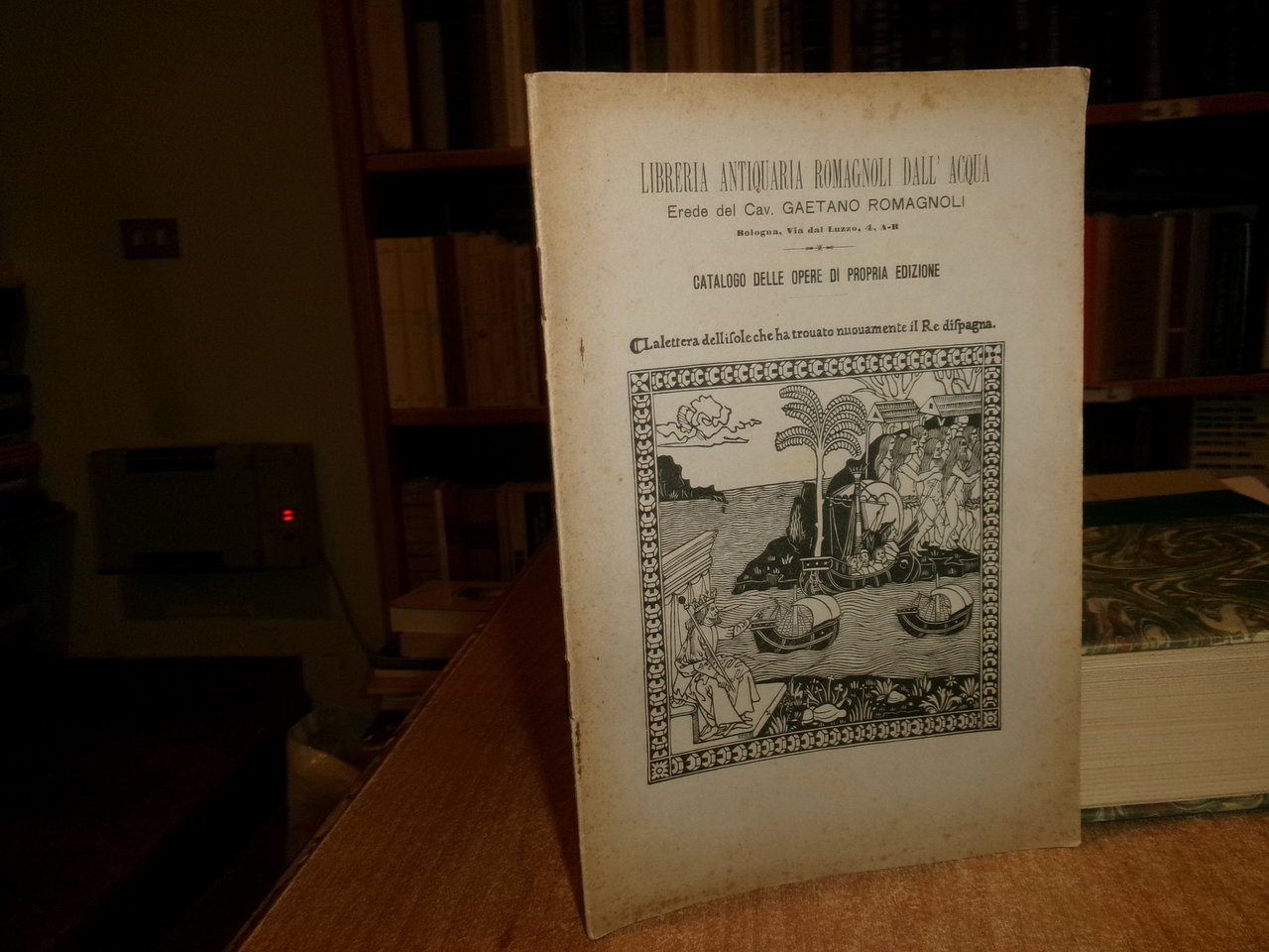 Libreria Antiquaria Romagnoli Dall' ACQUA Erede del Cav. Gaetano Romagnoli. Bologna, Cooperativa Tipografica Mareggiani, 1916. Catalogo delle Opere di Propria Edizione. In-8°, br. orig. 27 pp. Raro opuscolo ben conservato. Neg. mob. nero 10 entro busta trasp.