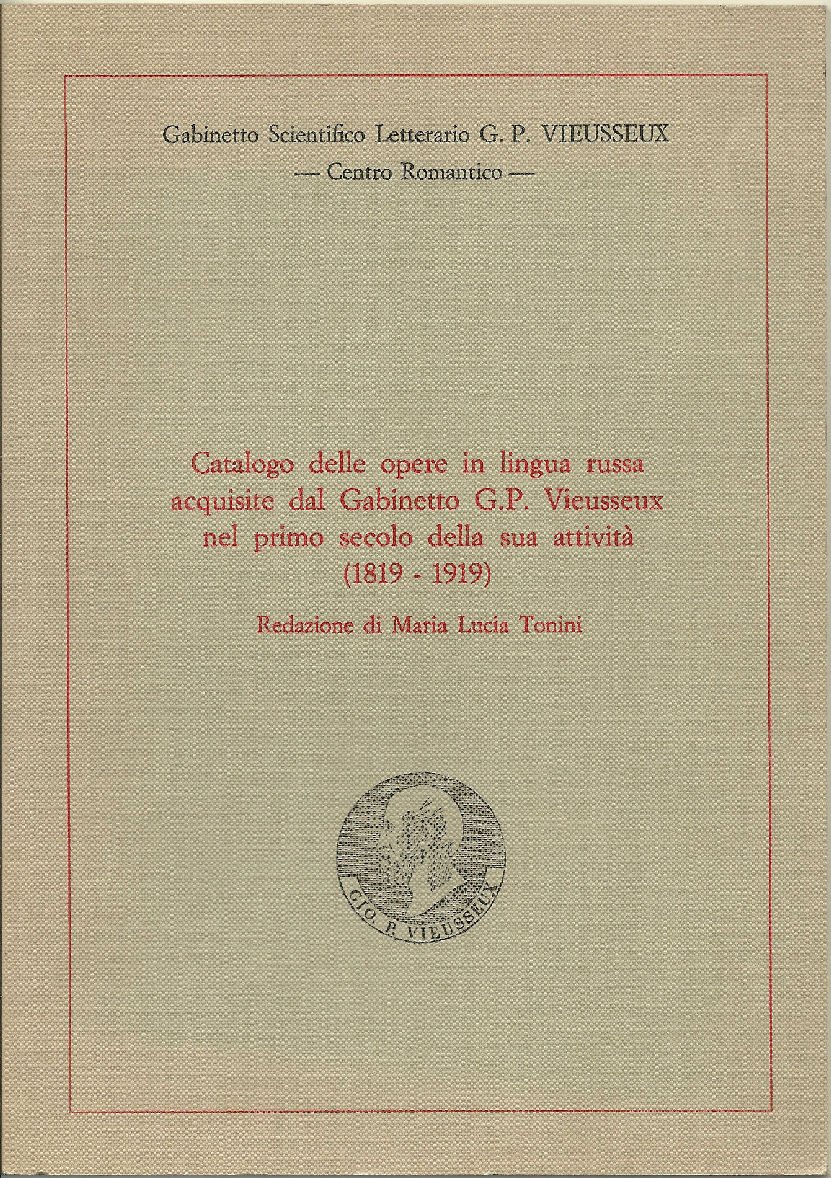Catalogo delle opere in lingua russa acquisite dal Gabinetto G.P. Vieusseux nel primo secolo della sua attività (1819-1919).