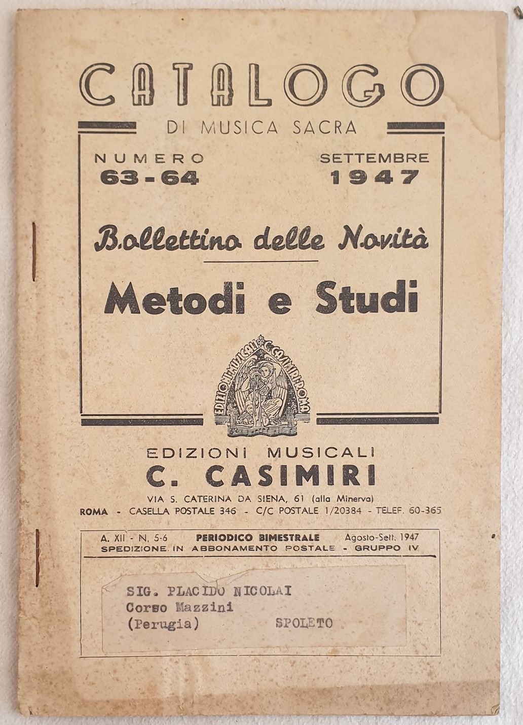 CATALOGO DI MUSICA SACRA NUMERO 63 64 SETTEMBRE 1947 BOLLETTINO DELLE NOVITA METODI E STUDI AGOSTO SETTEMBRE 1947