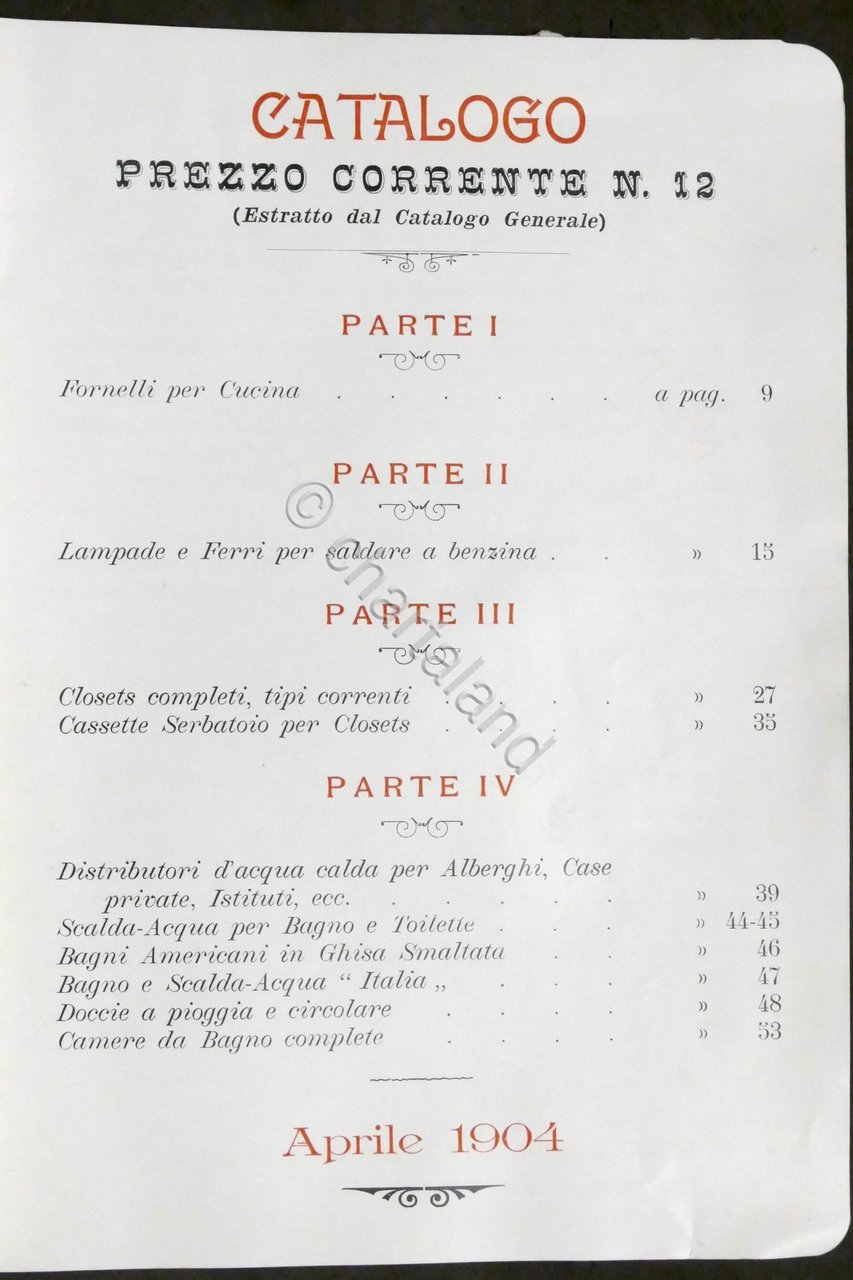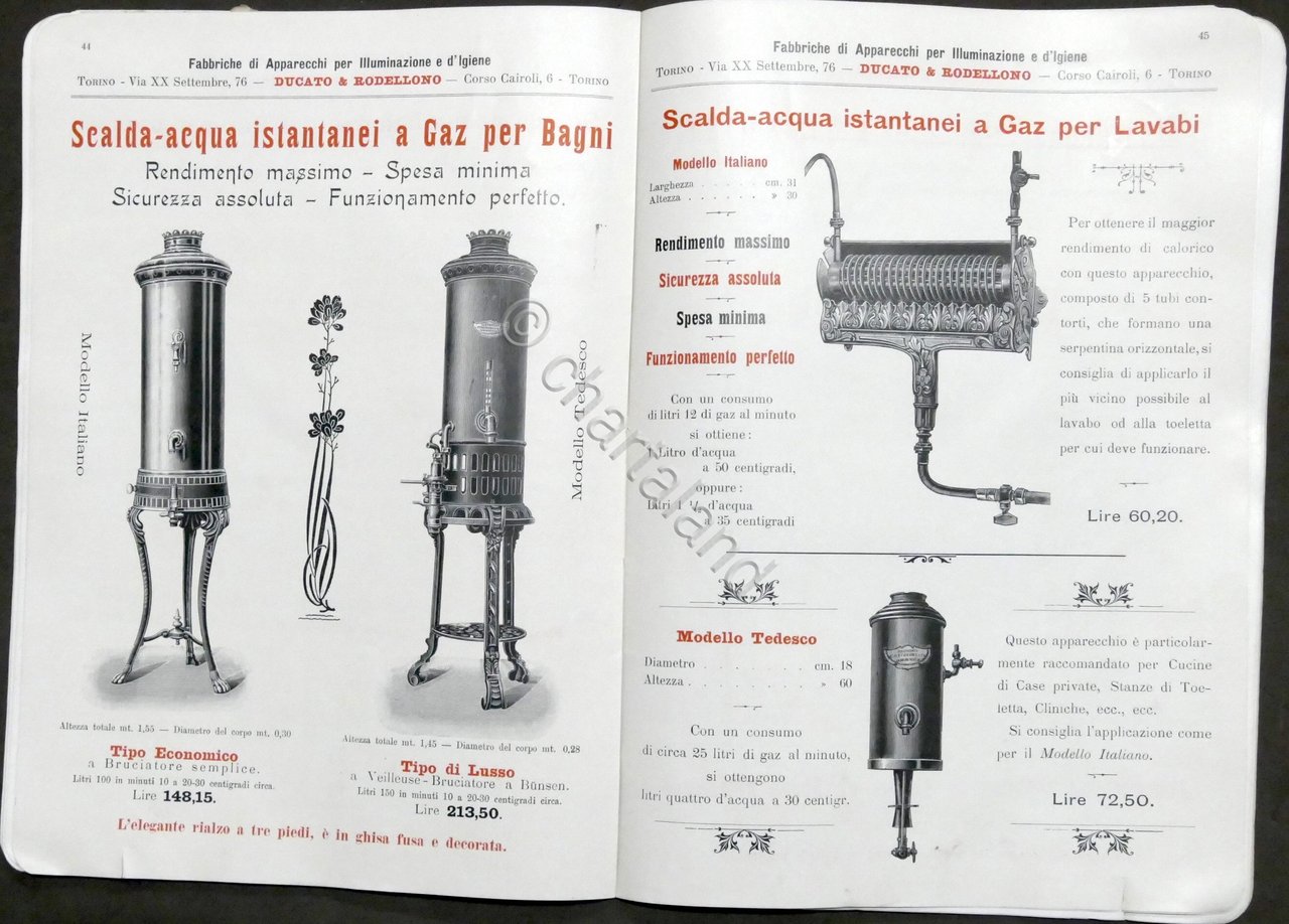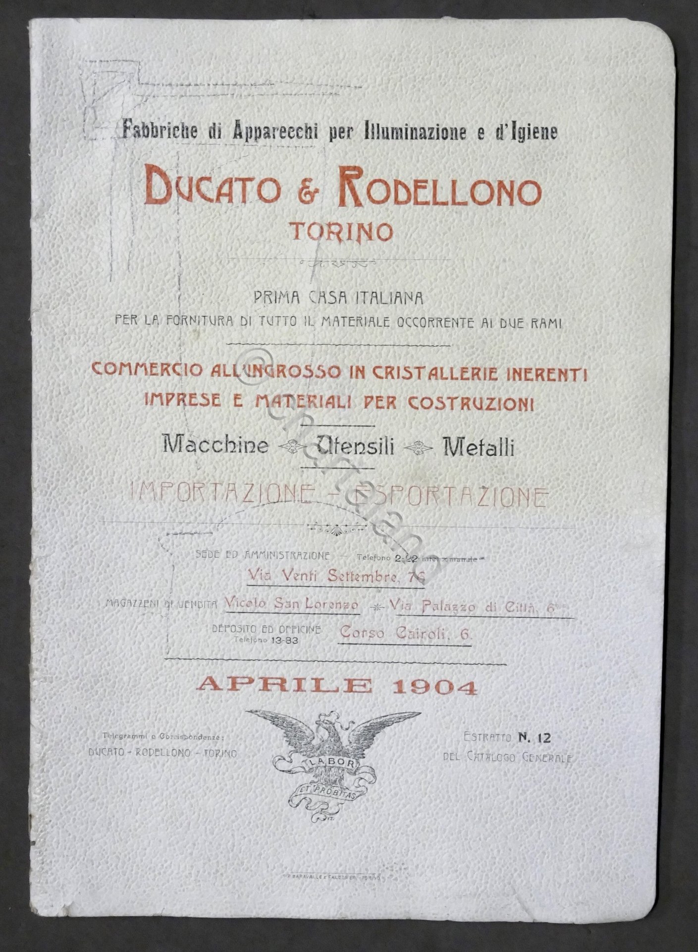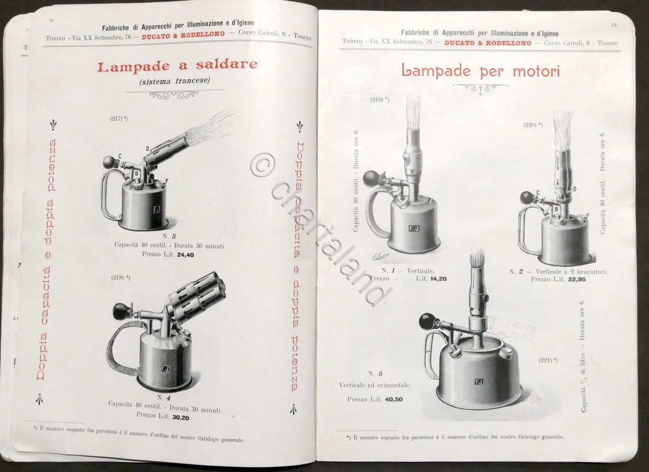 Catalogo Ducato &, Rodellono (Torino) - Fabbriche di Apparecchi per Illuminazione e d'Igiene - Aprile 1904