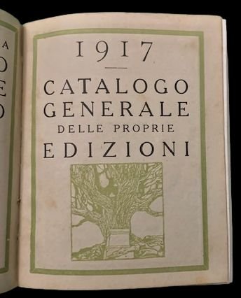 In 12° (9,5x12 cm); 125, (5) pp. e 16 c. di tavola con riproduzioni di esempi delle bellissime legature con la quale la Società Anonima Istituto Editoriale Italiano era solita caratterizzare le sue opere edite. Seguono 14 carte con le cedole di abbonamento ad alcune pubblicazione della nota casa editrice. Bellissima legatura in seta a motivi floreali in nero, verde e viola. Il testo è inserito in cornice verde con bellissime testatine e finalini animati. Prima ed unica edizione di questo catalogo editoriale della celebre casa editrice Società Anonima Istituto Editoriale Italiano fondata nel 1911 a Milano da Umberto Notari. Il suo emblema iniziale fu una scala con (ma anche senza) il motto Costruire. Titolo impresso fu fascetta al piatto anteriore. Le tavole presentano delle riproduzioni a colori delle bellissime ed innovative legature che caratterizzarono le opere edite dalla Soceità Anonima Istituto Editoriale Italiano. Esemplare in buone-ottime condizioni di conservazione.