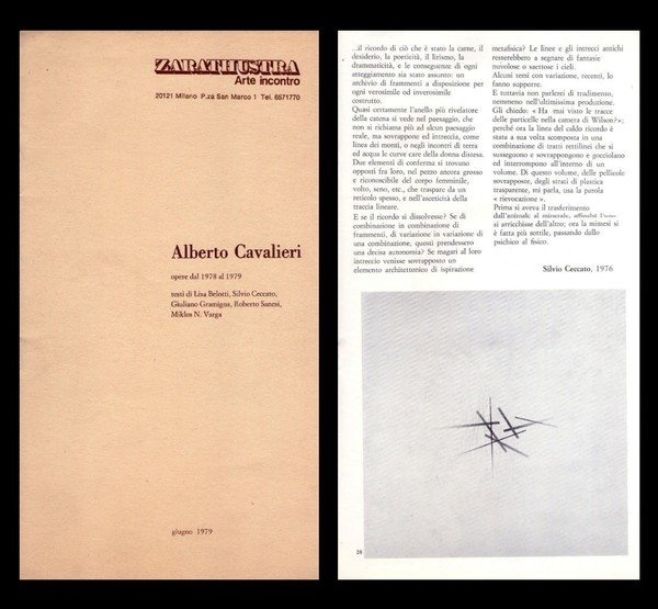 *Catalogo mostra ALBERTO CAVALIERI opere dal 1978 al 1979. Zarathustra Arte incontro. Giugno 1979