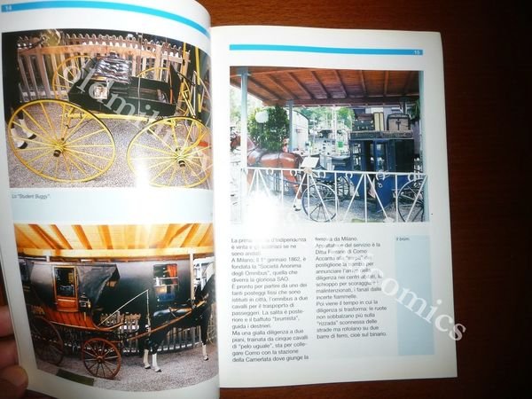 DESCRIZIONE: Catalogo del Museo Europeo di Ogliari del 2002, br. ed. ill. completamente ill. con ill. a col. in 8°. Il catalogo tratta di quanto esposto nel Museo, relativo ai vari mezzi di trasporto usati nei secoli: il cavallo, le prime rotaie, tram a cavllo, il vapore, ferrovie elettriche, il motore, funicolari, bicicletta, motocicletta, automobili, etc. etc. Vedere l'indice in foto. CONDIZIONI: Buone, parte finale del vol. ondulata, probabile umidità. PESO / WEIGHT: 364 gr. without package