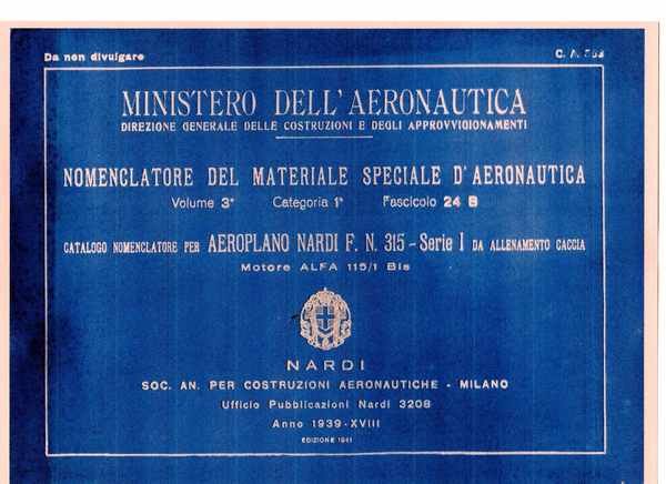 Catalogo nomenclatore per aeroplano Nardi F. N. 315 - Serie I da allenamento caccia - C. A. 563 - COPIA DELL'ORIGINALE IN VERSIONE STAMPATA CARTACEA