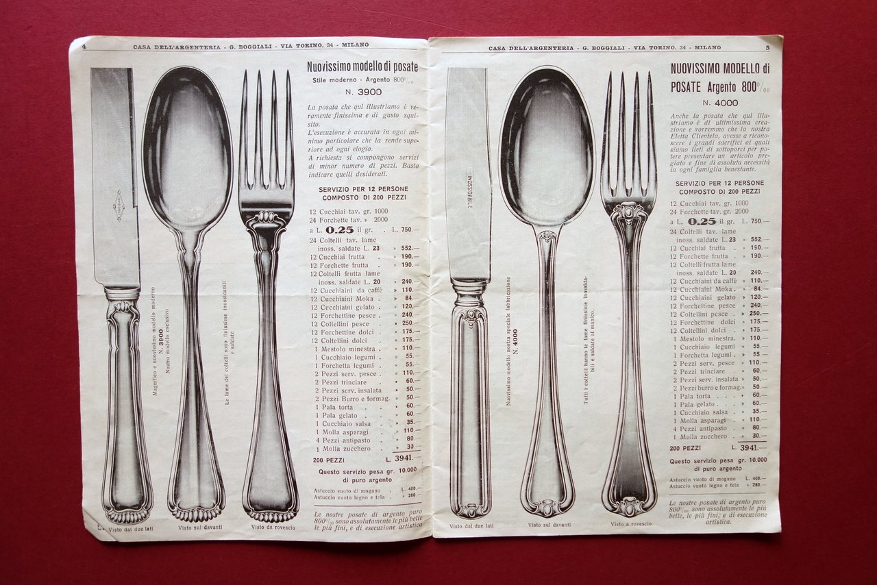 Catalogo Premiata casa dell'Argenteria Boggiali Milano 1932 Posate Servizi